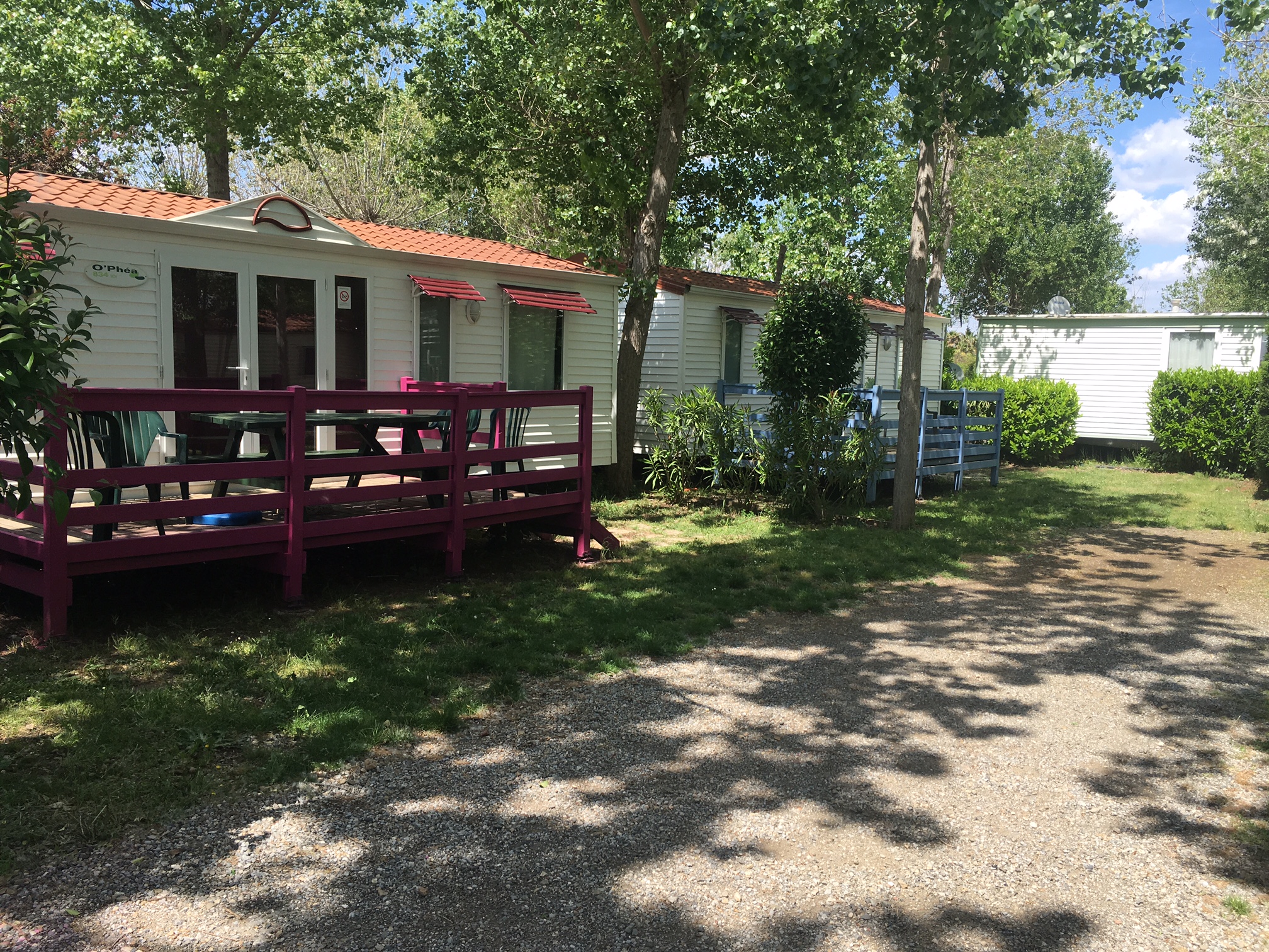 • Les mobil-homes d’une superficie de 32 m² avec une capacité d’accueil de 6 à 8 personnes. Ils sont équipés de 3 chambres avec terrasse privative, salon de séjour, cuisine et salle de bain.
